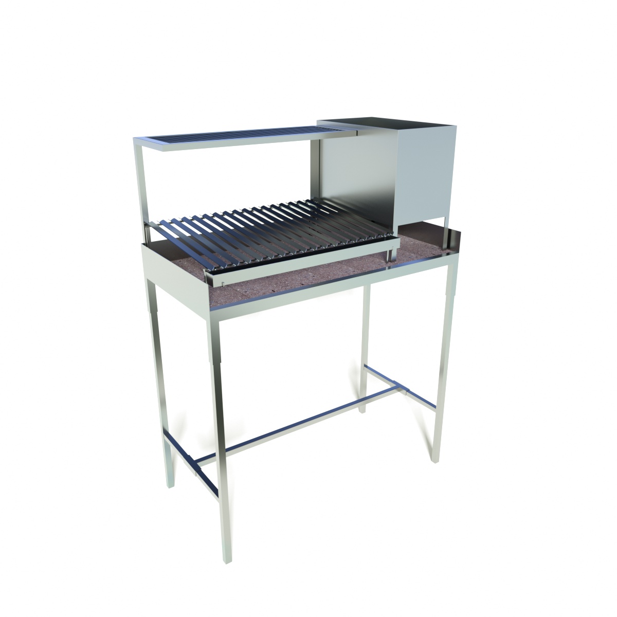 Acompanha grelha argentina com grelha de descanso Uruguaia, Fire box, Base caixa com tijolos refratários, 4 Pés de apoio e rastelo para a brasa.