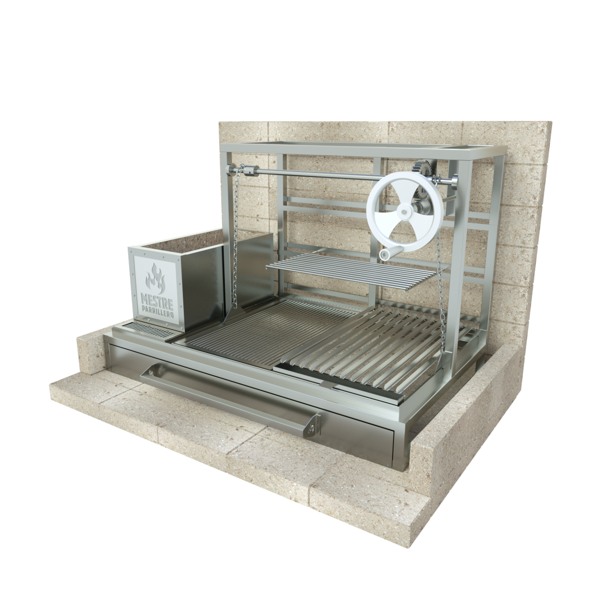 A **Parrilla de Alvenaria do Mestre** é a escolha perfeita para quem já possui uma estrutura de tijolos e busca complementar o espaço com um equipamento de alta qualidade e desempenho. Projetada para atender aos mais exigentes churrasqueiros, essa parrilla combina funcionalidade, durabilidade e elegância: